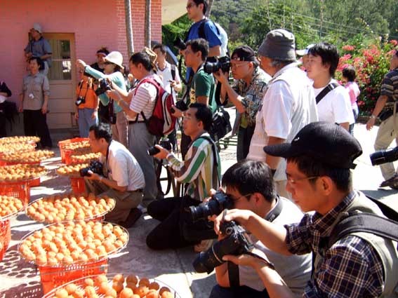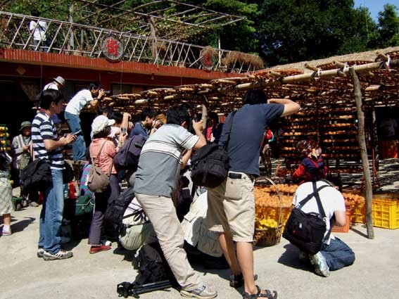 帶隊的老師說,這次拍攝的對象是衛味佳柿餅場。而這個曬柿場在這個時候,隨時都有個五六團攝影隊在拍攝。