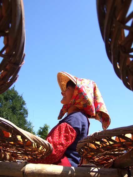 為了怕攝影師們拍的不過癮,老闆娘還體貼地去更換道具-扁擔。
