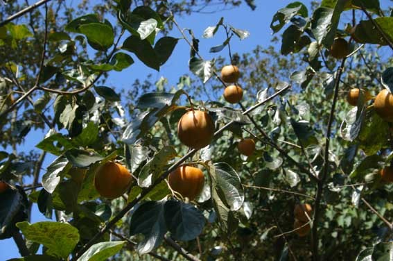 逛阿逛低,來到屋後的柿子園,一顆顆飽滿的大柿子就掛在樹上。