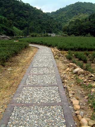 另一端長長的步道直入茶園中...