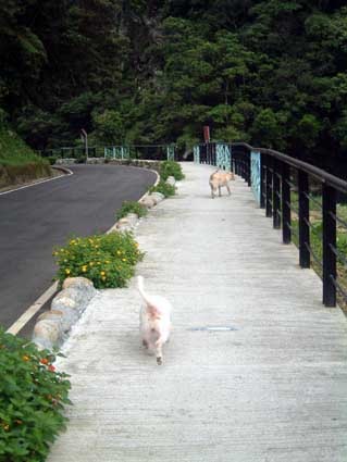 寬敞的車道讓狗狗走起來很安全,只是要注意偶而經過的自行車....