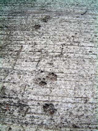 還有真真實實的貓腳印! 這邊的野貓真的很多,難怪聽這邊的居民說,這兒的狗很幸福,除了有廣大的空間可以運動,平時眉是最喜歡追追貓.果然,一路上就看到很多貓,有的在路邊曬太陽,有的在翻垃圾桶,有的正在被狗追...>"<