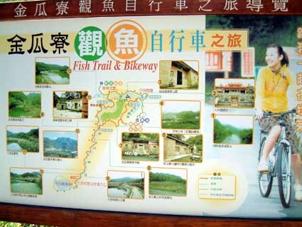 這個自行車道入口處還放了一輛歷史久遠的老爺車,聽說背後有一段趣事.就是當初鄉公所四處尋覓一輛有代表性的單車,結果相中了一個老農的單車,鄉公所人員為了讓老農願意割愛,煞費苦心,最後用一輛嶄新的單車跟老農交換,然後讓這輛走過歲月的老爺車矗立在自行車道口.
