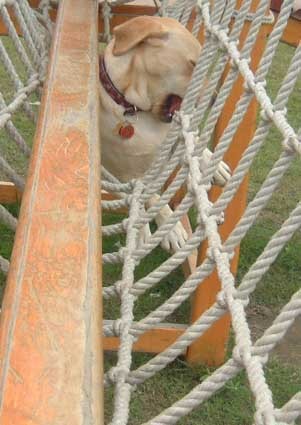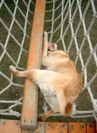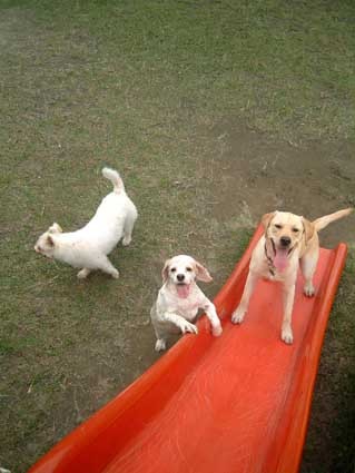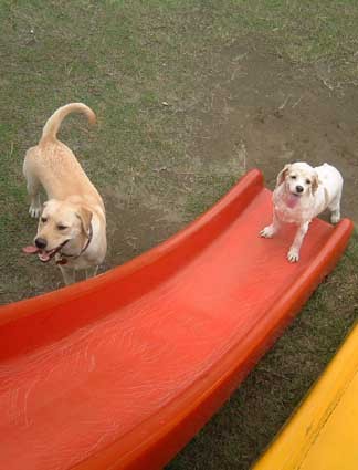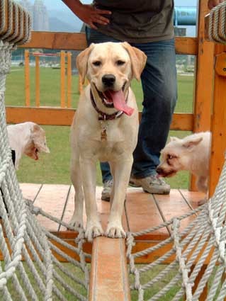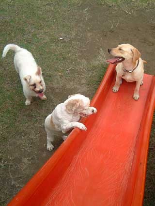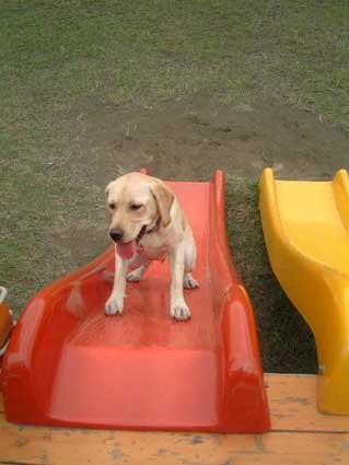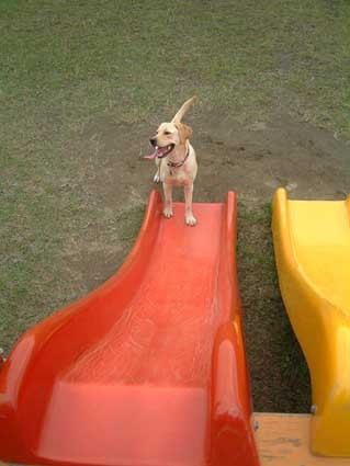 好吧!既然滑溜梯已經玩夠了,決定讓狗換一樣玩玩
