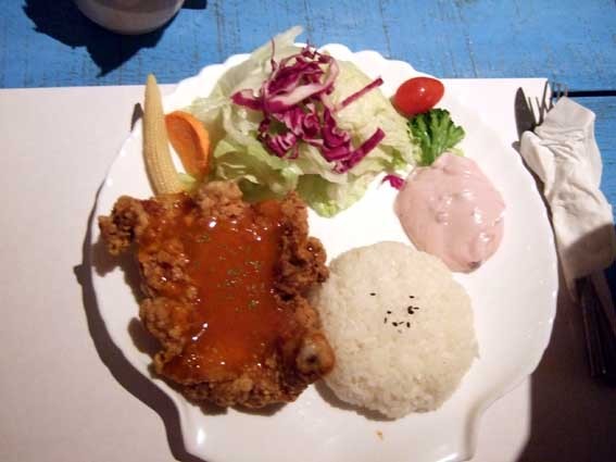 左邊是我點的紅燴牛肉,右邊是球媽點的泰式雞腿.