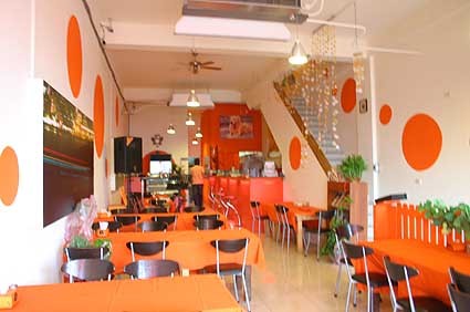 餐廳內部也採明快的橘色系裝潢.