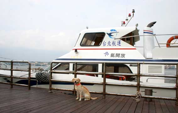 離開前,讓斑斑和渡輪合拍一下,謝謝船家的通融,也謝謝船家一點都不吝嗇的笑容,讓我們和狗狗渡過一趟難得的旅程~~