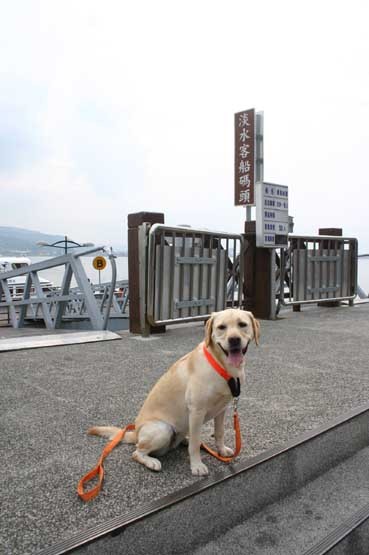 斑斑來和淡水碼頭拍一張,謝謝船家~~