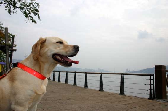 今天斑斑的表現真的超優,雖然天氣有些熱,但看著淡水河就是沒有想跳的慾望.