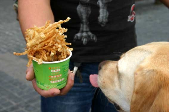 趁我再替斑斑拍照的時候,老公去買好久沒吃到的鹽酥菇.