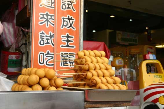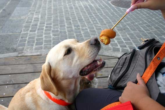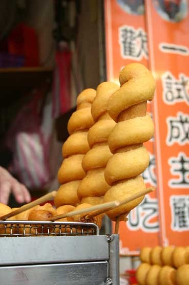 沿著河邊走,又看到一家小吃攤,賣的是我最愛吃的熱狗棒.