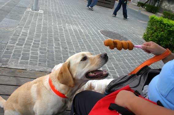 斑斑,今天好乖,最後一大口給你吃咧~~