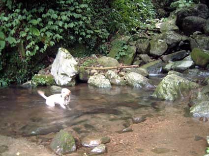 路途中還偶而會遇到一些小瀑布,形成的小水窪是讓狗狗休憩玩水的好地方.