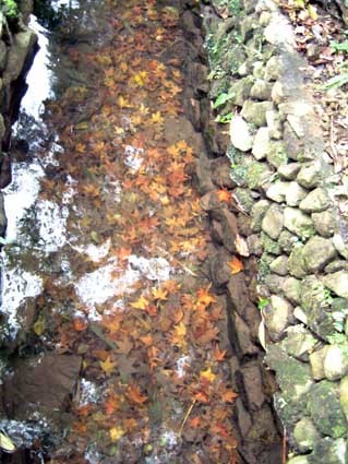古圳旁的楓紅落入水底,映成一片片的秋意,實在美極了!