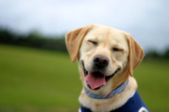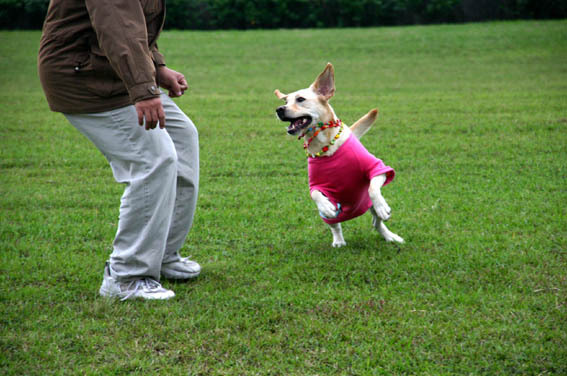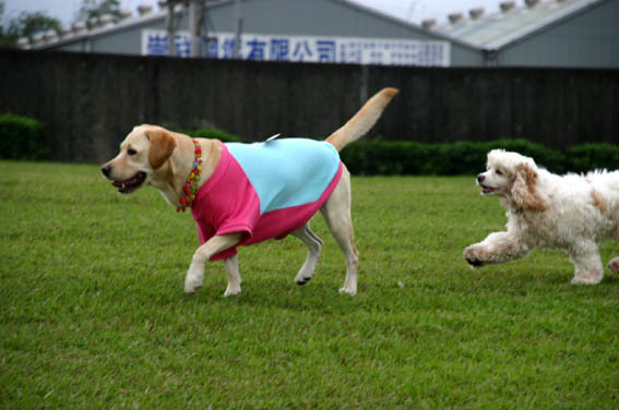 和把拔一起草地上玩樂的斑斑,真的很開心喔~