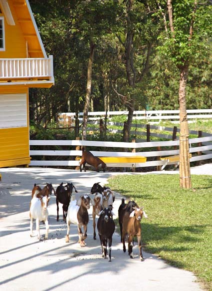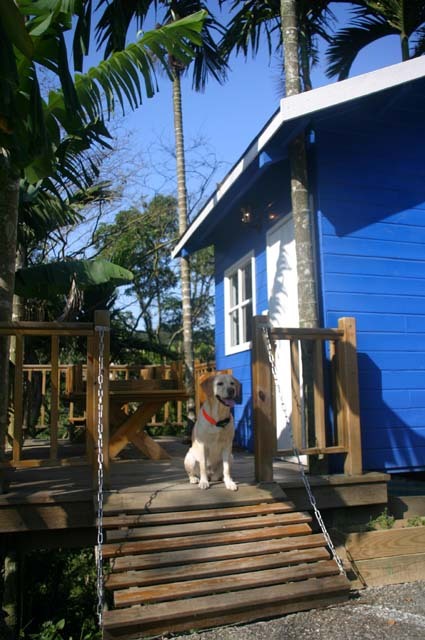 一旁檳榔樹園有幾棟小巧可愛的木屋,趕快讓斑斑先來拍張照~~
