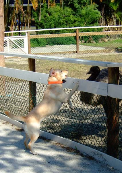 大鳥果然就是大鳥,面對囂張狂吠的大狗,依舊面不改色,氣定神閒~~