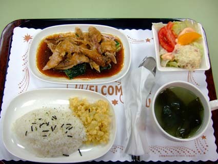 這是老闆ROSE大力推薦的道地山東燒雞套餐,附白飯,沙拉,海帶湯,和一份熱炒的洋蔥蛋。