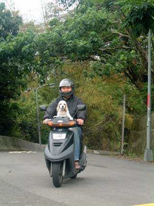 下山的時候,LuLu居然爬上機車座椅,就這麼騎車下山,