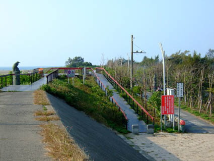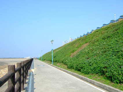 金城湖旁就是一段長長的堤防,外面就是沙灘.