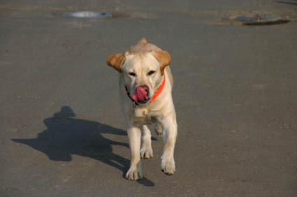 我不太瞭解為什麼在海濱旁會有運河?不過大狗對於有河出現在她面前,反應到是頗激烈低.