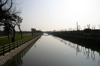 運河的一側是自行車道,另一側則是擁有曲折步道的大片草坪.