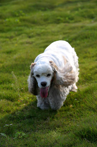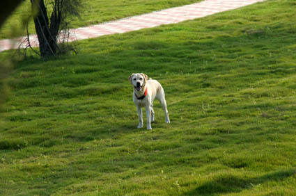 這大狗可不管熱不熱,只是甩著大舌和兩片耳朵,拼命地衝來衝去,發洩囤積的精力.