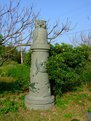 旁邊又發現一座貓頭鷹的雕像,不過想叫大狗拍照時,卻發現這傢伙居然跑去找她阿爸咧@@
