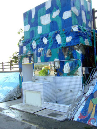 突起的高檯下其實是廁所,門前還有可以洗腳的區域.