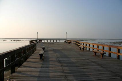 這長長的木平台駕高漁港邊,可以觀覽一大片的香山溼地.