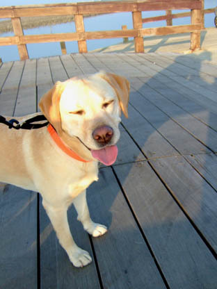 而且也因為退潮的緣故,平台旁的沙地上有許多遊客在戲水玩沙,當然,大狗也是一臉渴望的啦!!