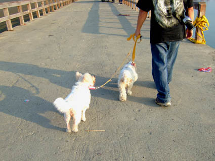 不過,我不想帶一隻髒狗回家,所以,斑斑還是乖乖的在平台上奔跑就好.