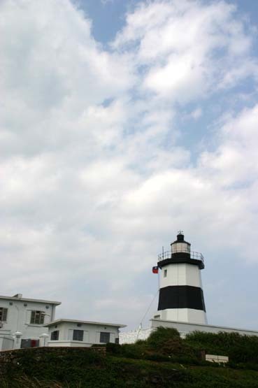 黑白相間的八角型燈塔,在藍天的襯托下顯得相當醒目獨特.