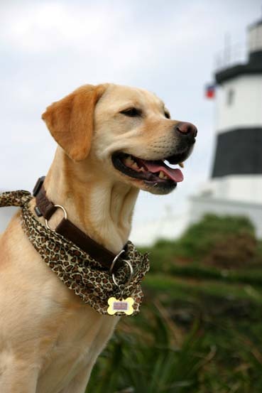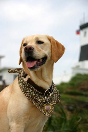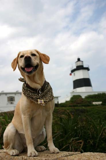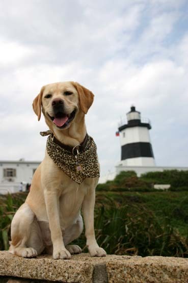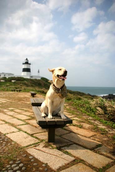 有美麗的燈塔和如畫布般的藍天白雲當背景,讓斑斑更可愛咧~~