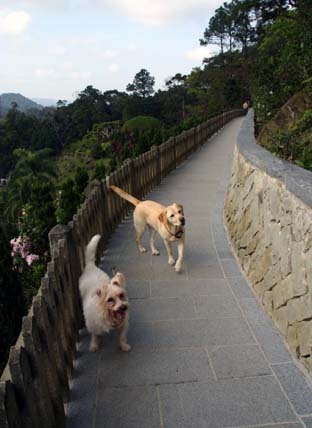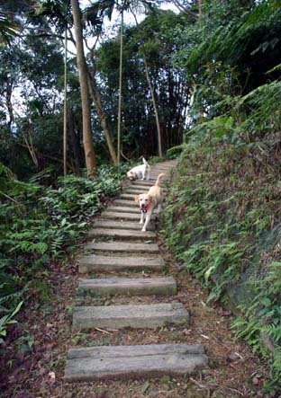 因為帶著三隻寶貝,所以依照告示牌,不能靠近"聖地".所以我們從廟旁的階梯往廟後方的白雞山走走步道.