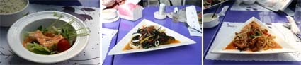 這回到紫微森林,景色一樣美,花一樣驚艷,但菜色卻讓我們感受到大大的不同.相較於兩年前的到訪,當時的菜色飽滿豐富,但這回菜色更改為義大利麵,不只沙拉的隨便,像我點的茄汁雞肉義大利麵,雞肉炸過老成雞肉乾,茄汁只有番茄醬的味道和油膩感.更別說我對三角形的盤子也有意見.