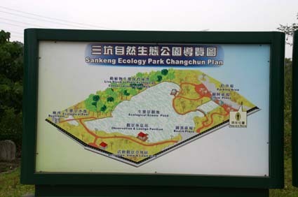 後來我們沿著堤防開,發現有另外一條大馬路可以從三坑老街前直直開過來.所以,當初是哪個混蛋在路口設置往自然生態公園的指示牌,害我們開進詭異的小路的啊!!