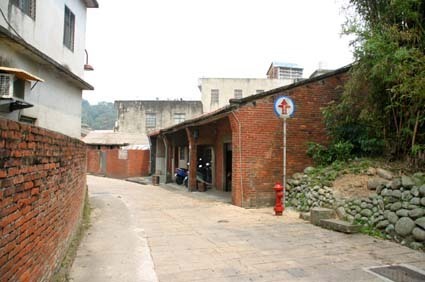 這是因為,這裡同時有「蔗蔀坑」、「火劫尾坑」、「鴨母坑」等三條水渠流經,所以在過去被稱為「三坑子」.再加上這兒鄰近大漢溪,當客家人來到此之後,更成為鄰近內陸與大溪間的水陸路貨運轉運站,毎天都有茶和雜貨在此交易.不過看看現在只有老人在屋前聊天,街上無車無遊客的寧靜景象,我只能說,實在很難想像當初街上接連著酒館、客棧、飯館等的熱鬧景象咧!!