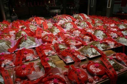 可能因為過年期間的緣故,廟內前埕擺放著滿滿的麵龜在供神,相當壯觀.