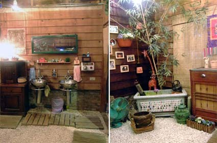 這是廁所的兩個角落,經過精心的佈置,總是讓第一回進廁所的人發出"哇"的讚嘆.