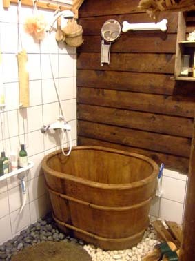 這是浴室,大大的柚木桶,好像回到了古早的過去時光.