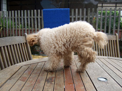 現在全身的毛髒髒亂亂的,但不久之後,就會有專屬美容師幫她做造型囉!!