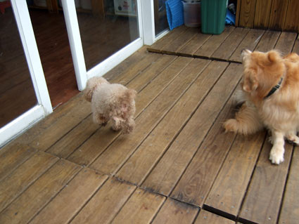 不習慣拍照的茶茶,趁亂轉身準備逃跑.