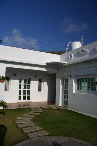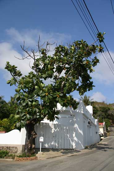 轉進小路,一眼就看到這大白拱門和屋前的麵包樹.
