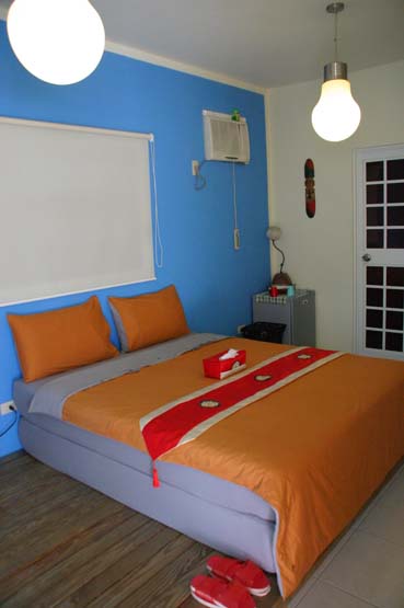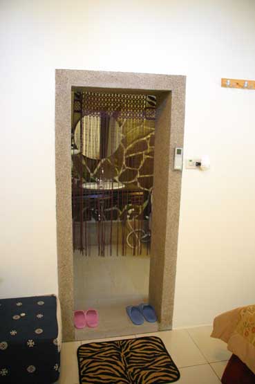 我們住的是側屋的四人房,房間很寬敞,有冰箱,冷氣,和掛在牆上的成本超級高的液晶電視咧~~