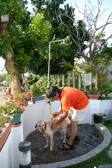 雁子設想的很周到,在院子的一角設置了沖水處,讓人狗可以先把身上或腳上的沙子沖乾淨再進屋.