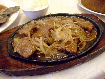 香噴噴上桌的鐵板牛小排,讓大狗看的眼發直,一直吵著也想吃咧~~