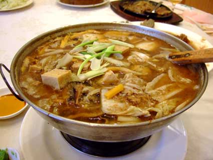 套餐的重頭戲是這砂鍋魚頭,因為先前的菜都已經是宴客級的大份量,這大沙鍋一放上桌,更是讓已經差不多飽的我們傻眼.不過以沙茶為底的湯頭和豐富湯料,還是讓我們嚐了一些.