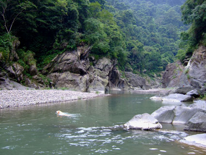 譬如上龜山橋的下面就是很多人聚集的戲水處.