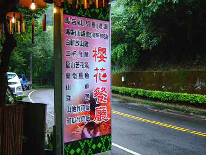 於是我們隨便在烏來瀑布前,找了一家標榜原住民料理的餐廳--櫻花餐廳.